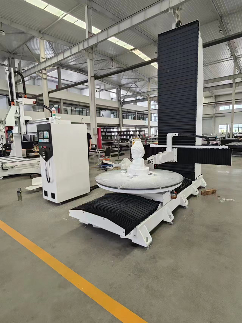 This 1525 Vertical 5 Axis Foam Engraving Machine is mainly used for vertical engraving and milling, side drilling and processing of composite material molds such as foam, wood molds, carbon fiber, etc. With Large-scale three-dimensional processing with engraving and milling diameter of 1500mm-2000mm and height of about 2500mm-3000mm. It adopts the vertical structure processing method of spindle swing head + rotating disk.