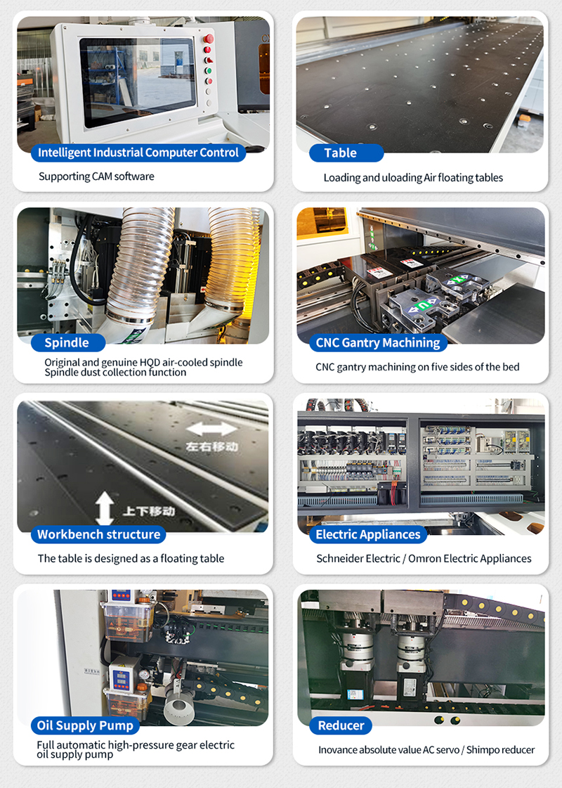 La máquina perforadora de seis lados tiene las funciones de taladrar, ranurar, redondear y fresar. El marco se mecaniza con precisión mediante un centro de mecanizado de pórtico CNC. Se utiliza el auténtico husillo refrigerado por aire HQDKW, que tiene la función de recolección de polvo. La cama de alta resistencia adopta un tratamiento integrado de soldadura, recocido y envejecimiento.